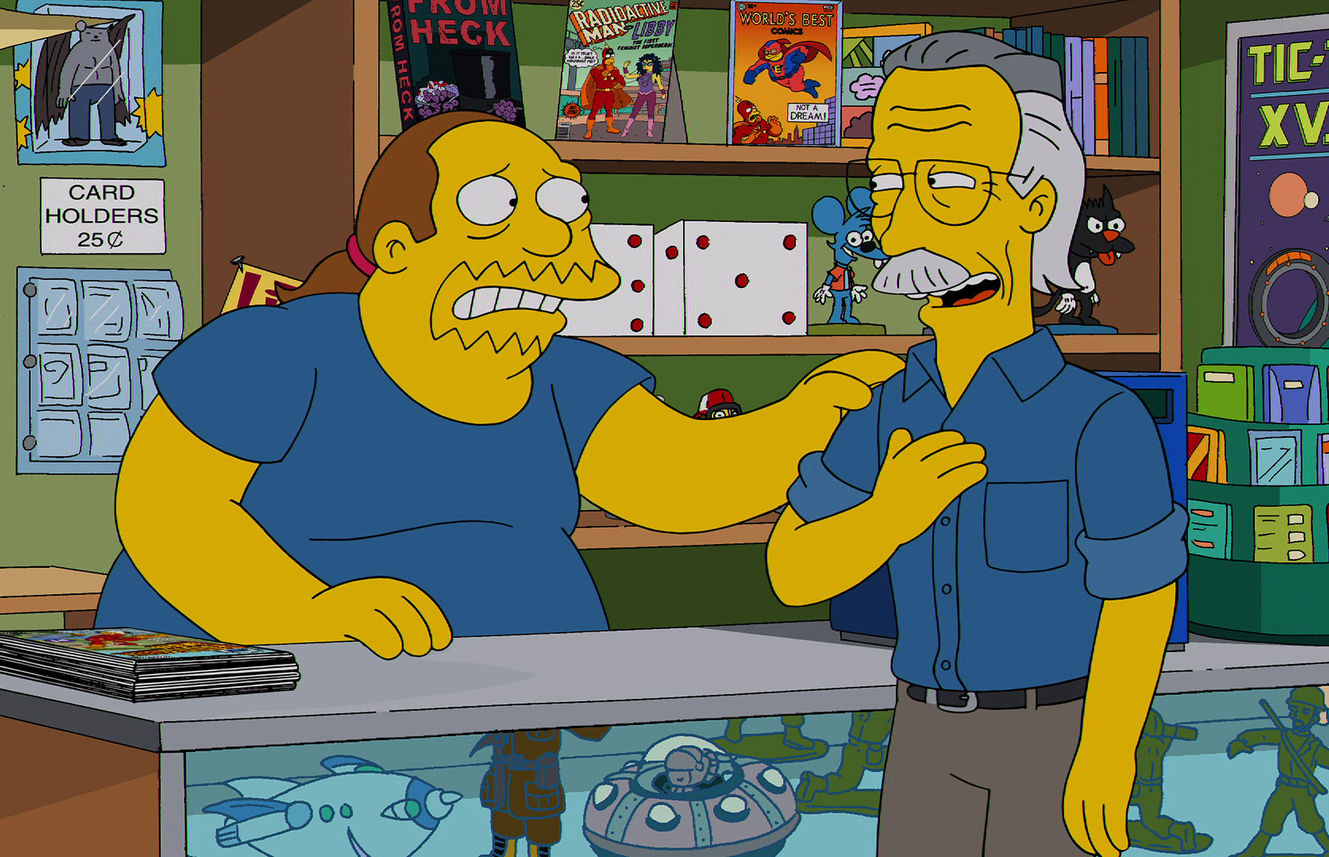 El nerd favorito de todos, el hombre de la tienda de cómics rebosa de felicidad cuando está en su tienda, menospreciando a la gente y siendo sarcásticos. En la imagen, lo vemos juntos a su héroe, Stan Lee (quien hizo su propia voz) en el episodio «Married To The Blob.»