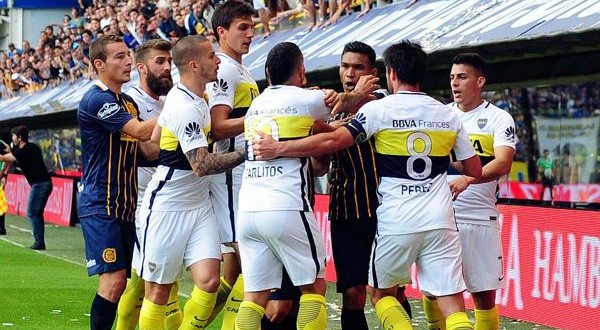 El delantero del club canalla celebró el tanto del empate de cara a los hinchas de Boca con gestos de la banda cruzada en su pecho, en clara referencia a su ex club River Plate. De inmediato, todos los jugadores xeneizes se abalanzaron sobre el colombiano y le pidieron a Darío Herrera que lo expulsara. Sin embargo, el árbitro tenía en su mano la tarjeta amarilla.