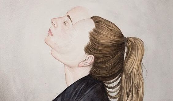 Chica con coleta y doble rostro