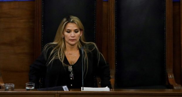 Añez, segunda vicepresidenta del Senado, se había autoproclamado momentos antes presidenta de la cámara Alta, ante la ausencia de la titular del órgano y del primer vicepresidente, supuestamente asilados en la embajada de México en Bolivia. «Queremos convocar a elecciones lo más pronto», dijo en un discurso.