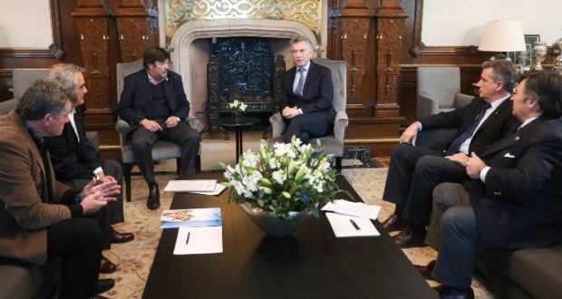 El presidente Mauricio Macri, junto a su ministro de Agricultura, Ganadería y Pesca, Luis Miguel Etchevehere; recibió hoy a los presidentes de las cuatro entidades que integran la Mesa de Enlace: Daniel Pelegrina (Sociedad Rural Argentina), Dardo Chiesa (CRA), Carlos Iannizzotto (Coninagro) y Carlos Achetoni (Federación Agraria).