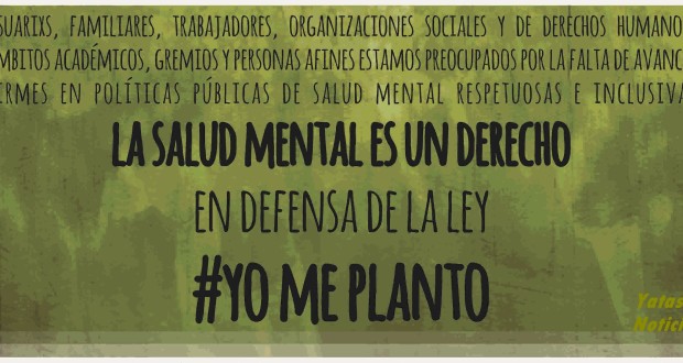 Diferentes actores involucrados con la salud mental, como organizaciones sociales, colegios de psicólogos, usuarios, familiares, trabajadores, organizaciones sociales y de derechos humanos, ámbitos académicos, gremios y personas preocupadas por la falta de avances firmes en políticas públicas de Salud Mental respetuosas e inclusivas, marcharán el 7 de octubre en todo el país, en defensa de la Ley Nacional de Salud Mental 26657, bajo la consigna “Yo me Planto”.